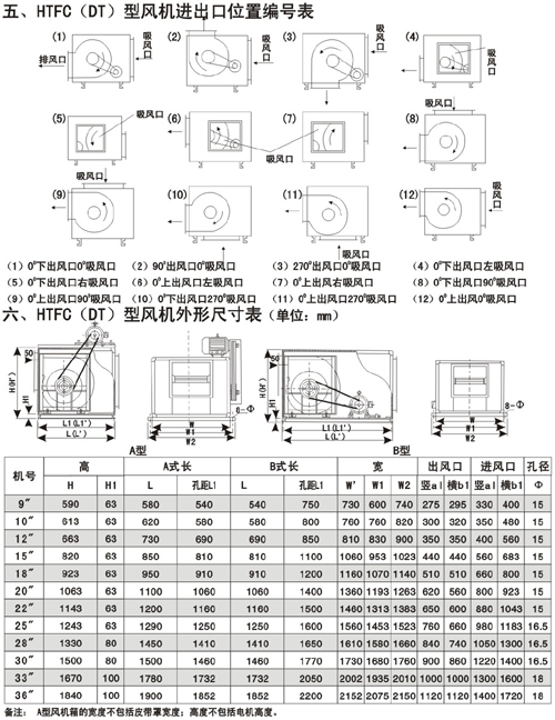 4.HTFC(DT)系列低噪聲消防通風(fēng)(兩用)柜式離心風(fēng)機分為A型和B型兩種類型,A型電機裝在箱體外,用于消防排煙;B型電機裝在箱體內(nèi),用于通風(fēng)換氣。