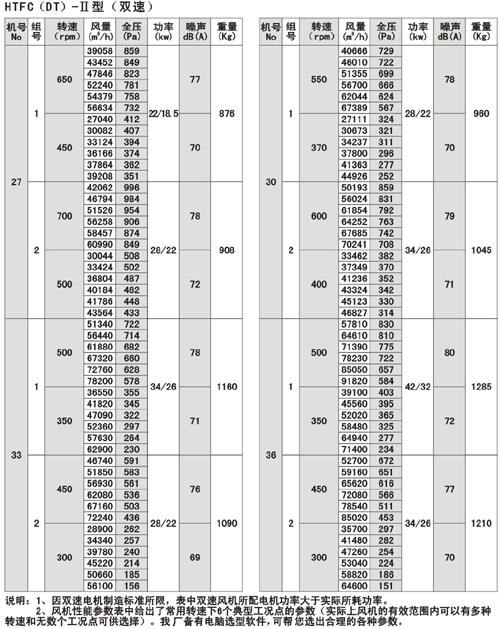 (1).HTFC(DT)系列消防通風(fēng)(兩用)低噪聲式離心風(fēng)機分為I。II。I為單速,II為雙速。該系列風(fēng)機有較多的性能參數(shù),以滿足不同用戶的需要。